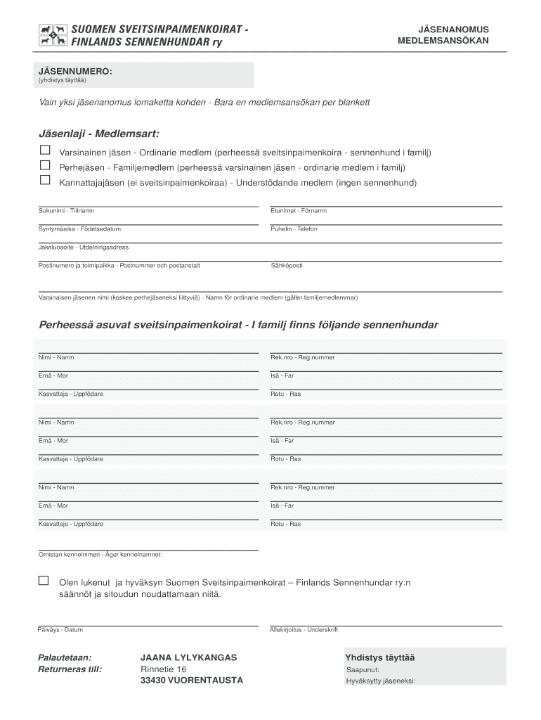 How to fill out perheess asuvat sveitsinpaimenkoirat