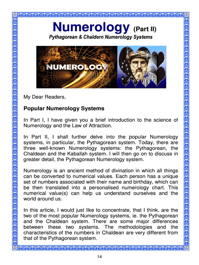 Numerology (Part II) Pythagorean & Chaldean Numerology Systems Dear Readers, Popular Numerology Systems In Part I, I have given you a brief introduction to the science of Numerology and the Law of