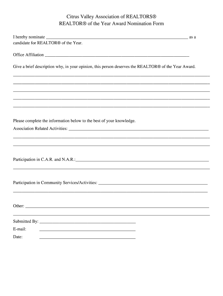 Realtor Of Form Year is not the form you're looking for?Search for another form here.