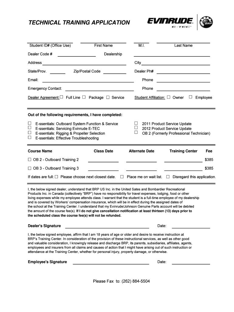 Get the free Technical Training Schedule - Evinrude Government Sales