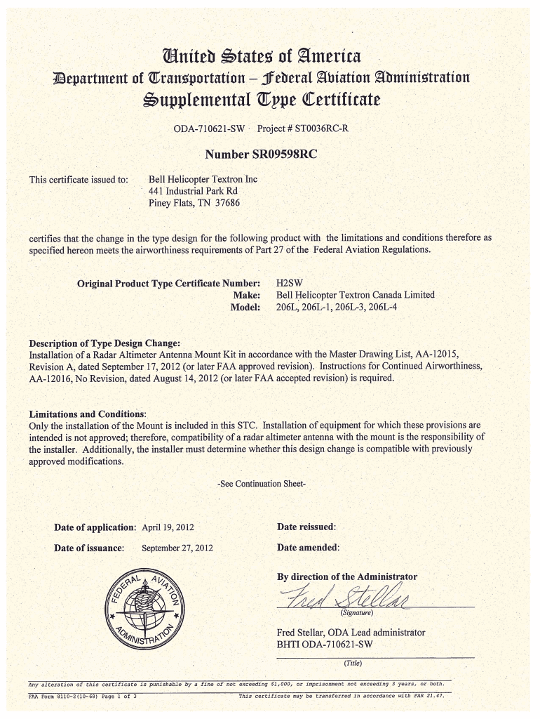 INSTRUCTIONS: The transfer endorsement below may be used to notify the appropriate FAA Regional Office of the transfer of this Supplemental Type Certificate.
