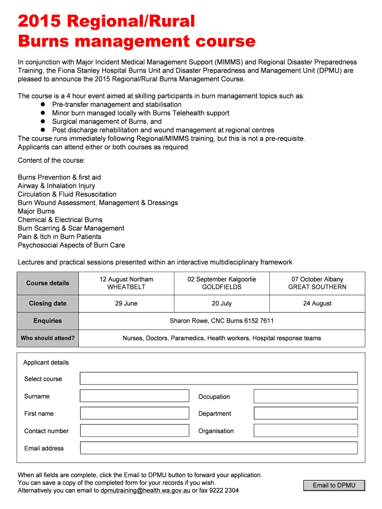 Get the free 2015 Regional/Rural Burns management course - Healthy WA