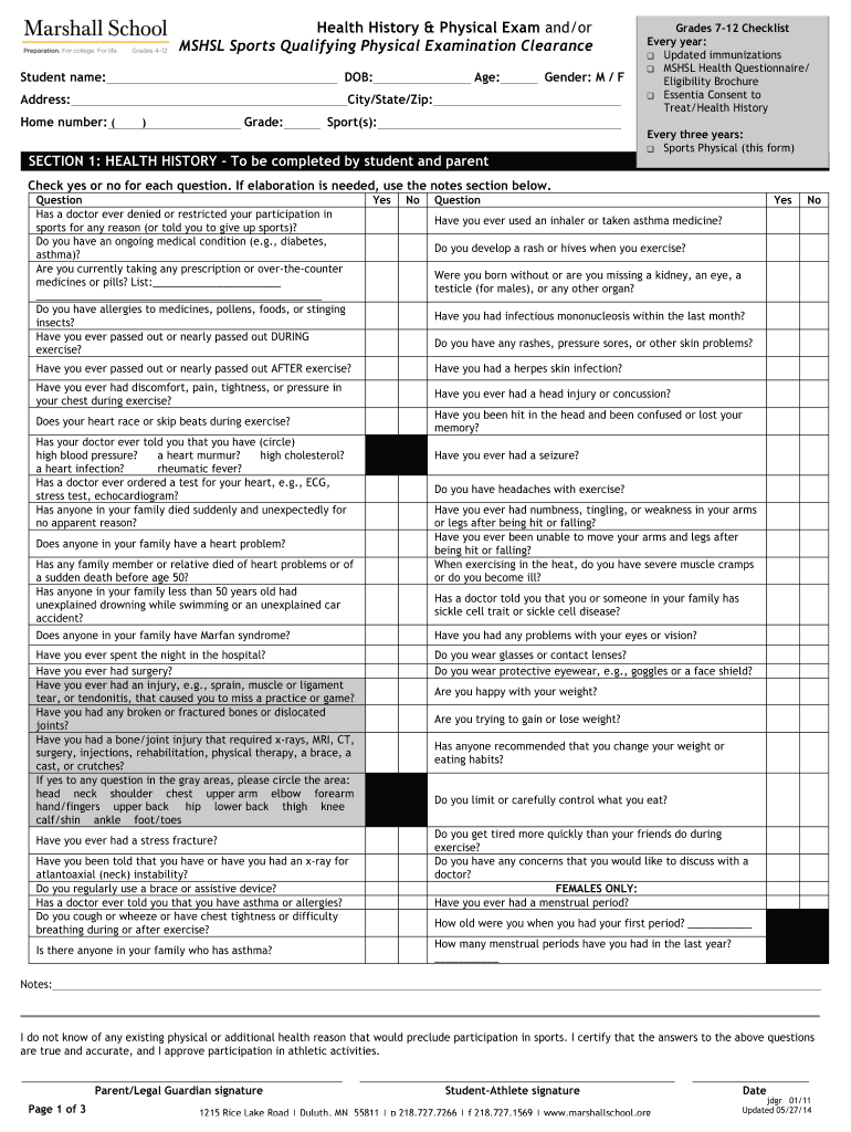 Get the free 14-15 Sports Physical Form - rSchoolToday