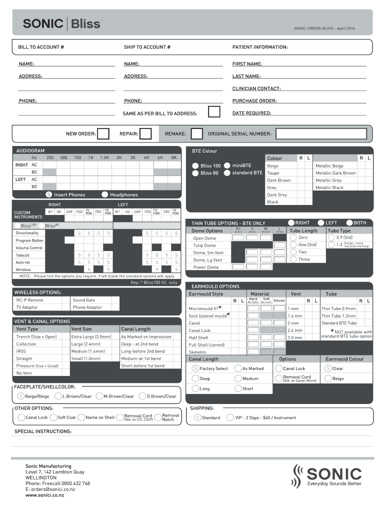 Sonic Manufacturing Level 7, 142 Lamb ton Quay WELLINGTON Phone: Free call 0800 432 748 E: orders×sonic.co.NZ www.sonici.co.nz THIN TUBE OPTIONS — BE ONLY