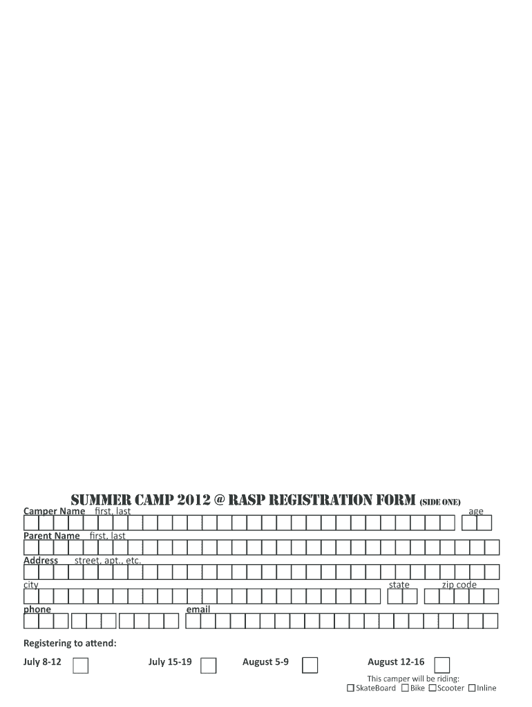 CAMP RASP REGISTRATION FORM (SIDE TWO) A RASP Waiver of Liability contract and a RASP Rules Agreement must be fully completed before a camper is allowed to ride.