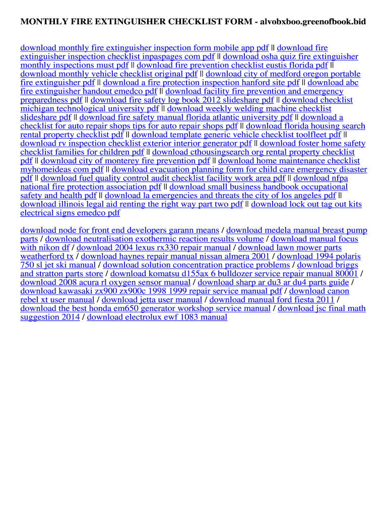 MONTHLY FIRE EXTINGUISHER CHECKLIST FORM alvobxboo.greenofbook.bid download monthly fire extinguisher inspection form mobile app PDF download fire