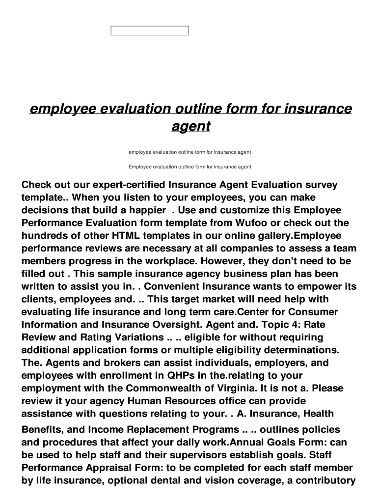Employee evaluation outline form for insurance agent employee evaluation outline form for insurance agent Employee evaluation outline form for insurance agent Check out our expert certified Insurance