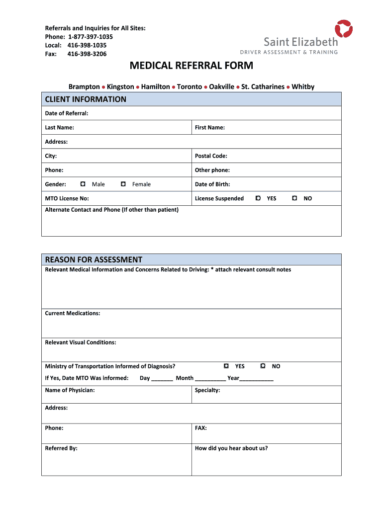 Get the free MEDICAL REFERRAL FORM - Saint Elizabeth