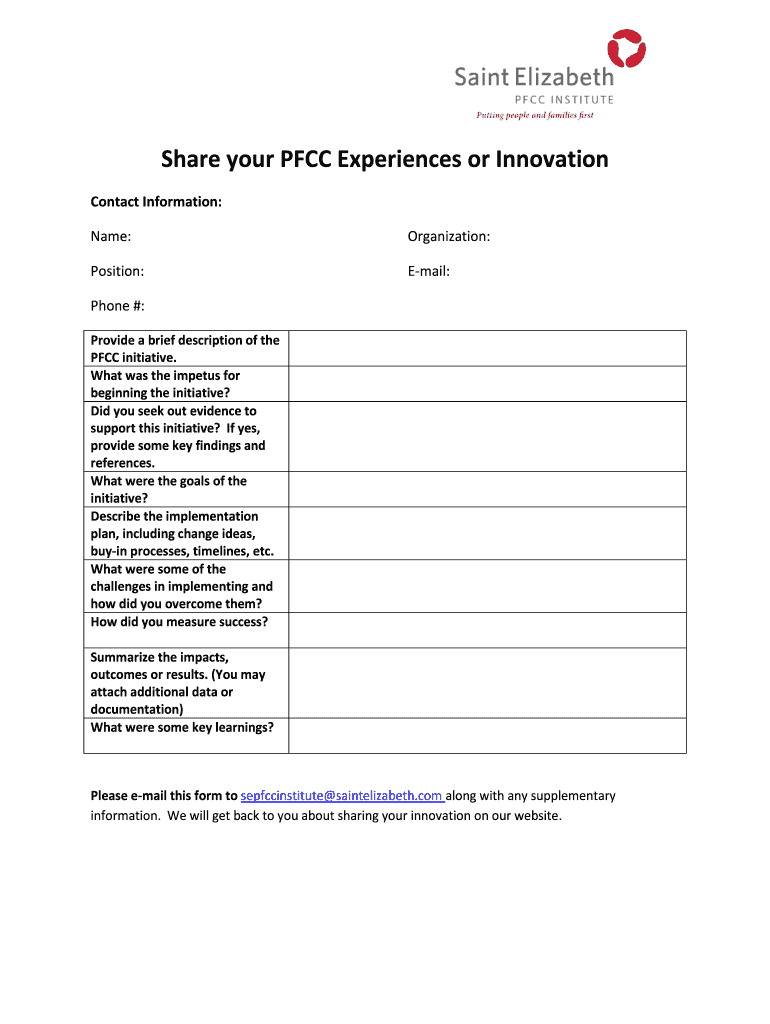 Get the free Share your PFCC Experiences or Innovation - Saint Elizabeth