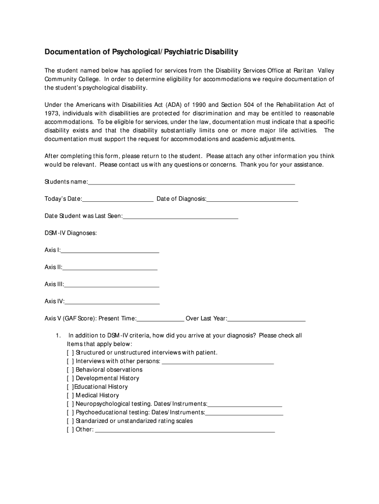 Comprehensive Guide to psychological disability documentation form