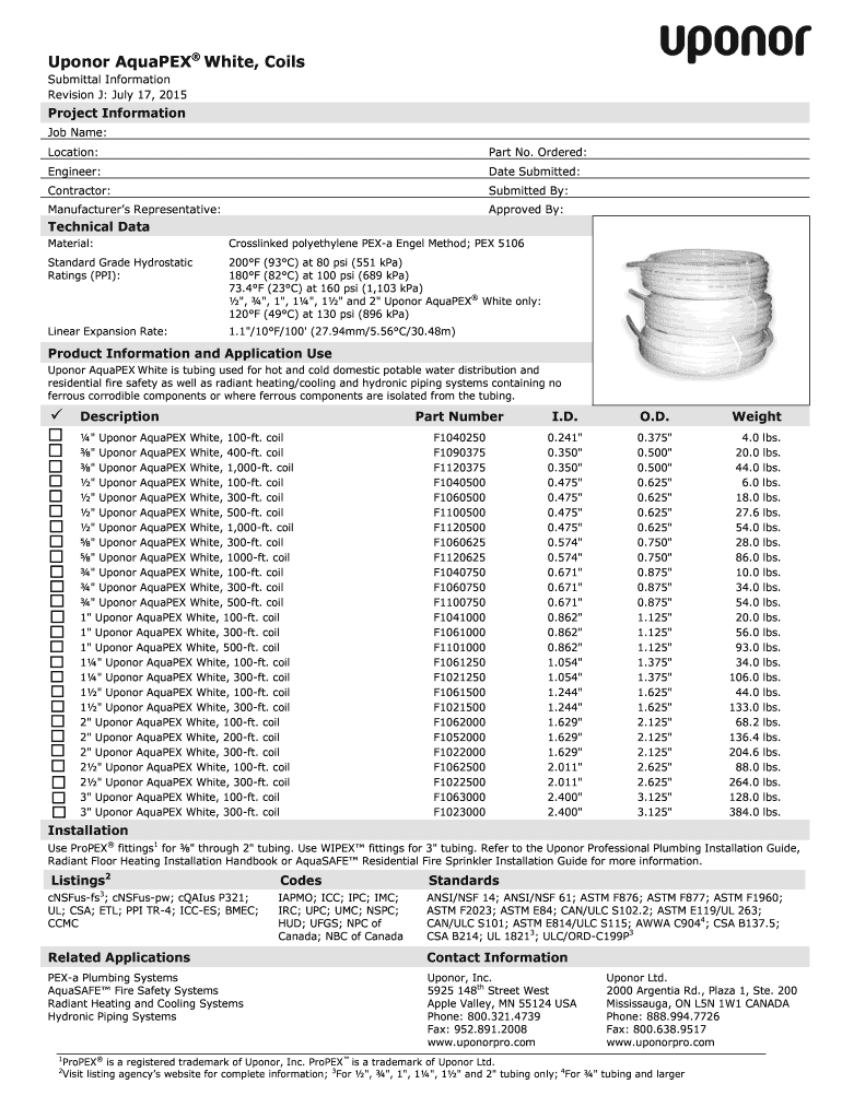 Contractors and plumbers who are installing Uponor AquaPEX White Coils are typically required to file the necessary paperwork.
