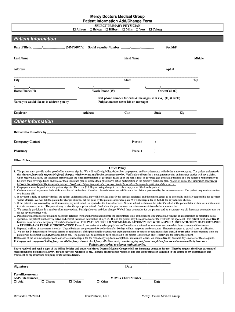 Get the free Patient Information Form - Mercy Doctors Medical Group