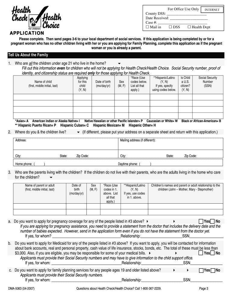 Get the free DMA-5063-ia Health Check/NC Health Choice for Children Application
