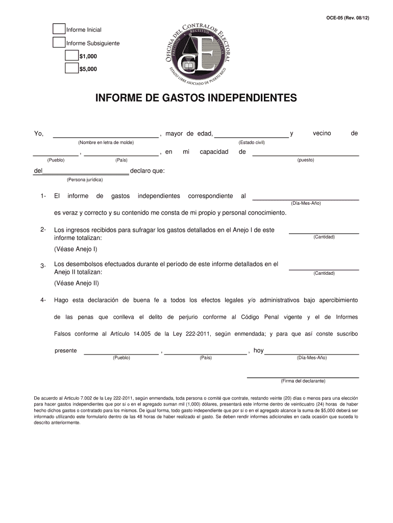 Get the free INFORME DE GASTOS INDEPENDIENTES - contralorelectoral.gov.pr - contralorelectoral gov
