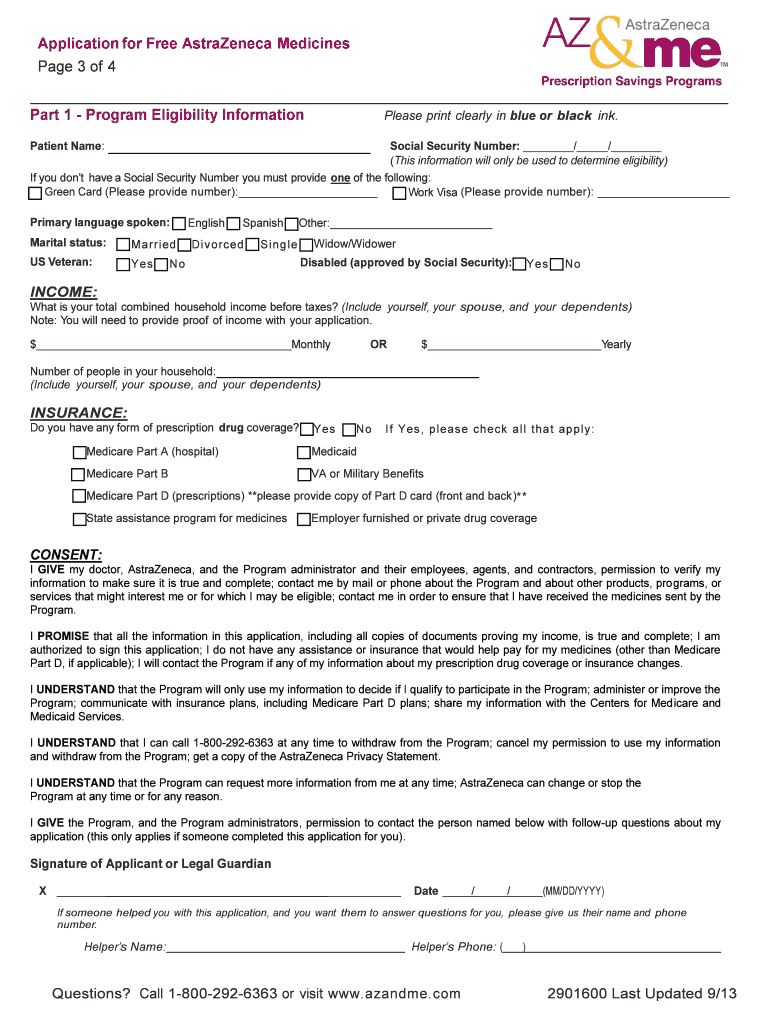 Eligible patients include those whose income falls within specified limits and who provide the necessary documentation to verify their financial status. The application aims to ease the burden of healthcare expenses by providing free medicine options through the AstraZeneca financial assistance program.