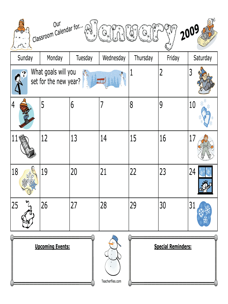 O u r C l an s o o m C an l e n d an f o r. . Sunday Monday Tuesday Wednesday Thursday Friday Saturday What goals will you set for the new year? 1 2 3