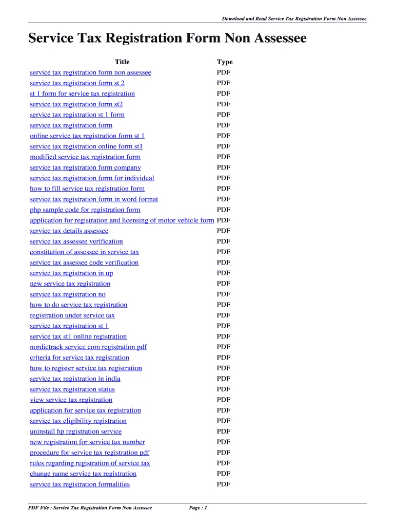 Download and Read Service Tax Registration Form Non Assessed. Title Type public service UGA application form PDF internal revenue service form 941 PDF.
