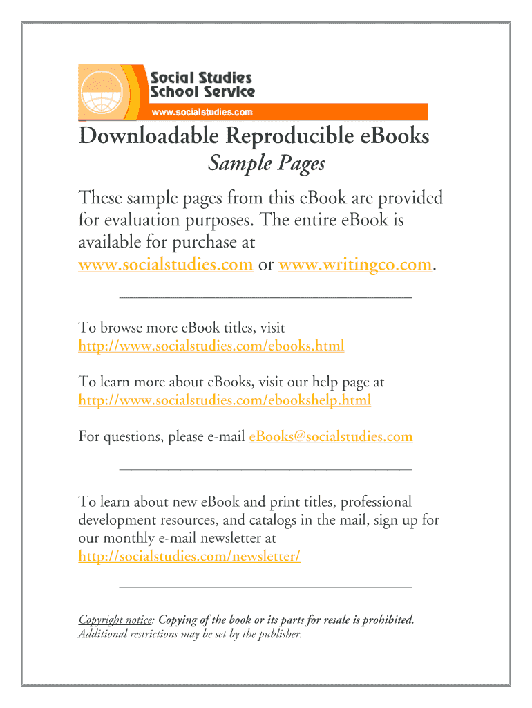 Downloadable Reproducible e-books Sample Pages These sample pages from this e-book are provided for evaluation purposes. The entire e-book is available for purchase at www.socialstudies.com or www.writingco.com.
