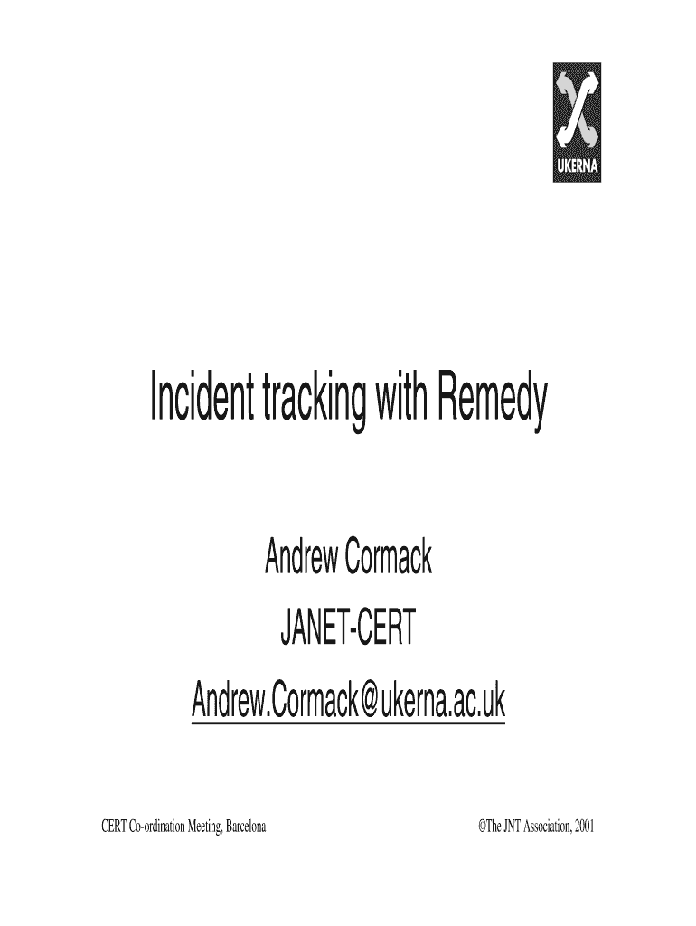 CERT Coordination Meeting, Barcelona JNT Association, 2001Remedy AR Server is a toolkit
