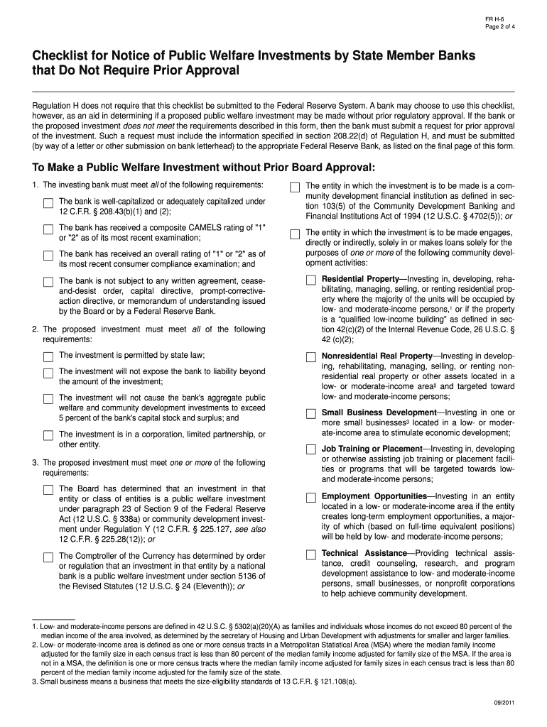 FR H-6 Page 3 of 4. Notice of Public Welfare Investments by State Member Banks to the Federal Reserve System Continued Information about the Investing Bank.