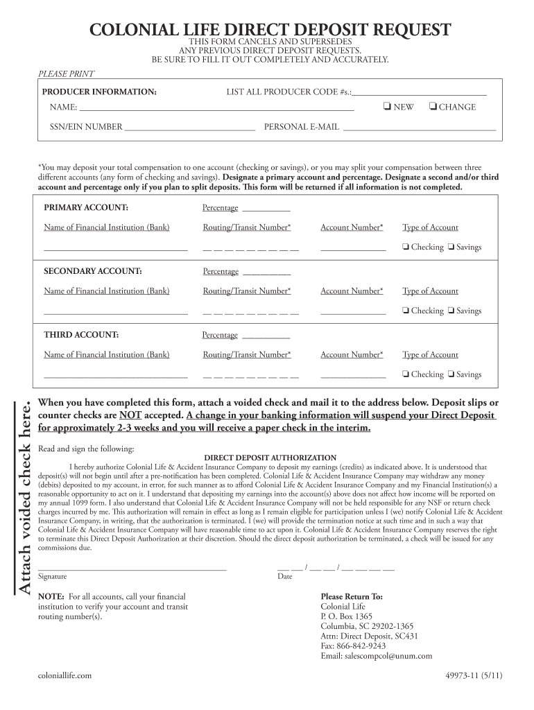 How to fill out the colonial life direct deposit