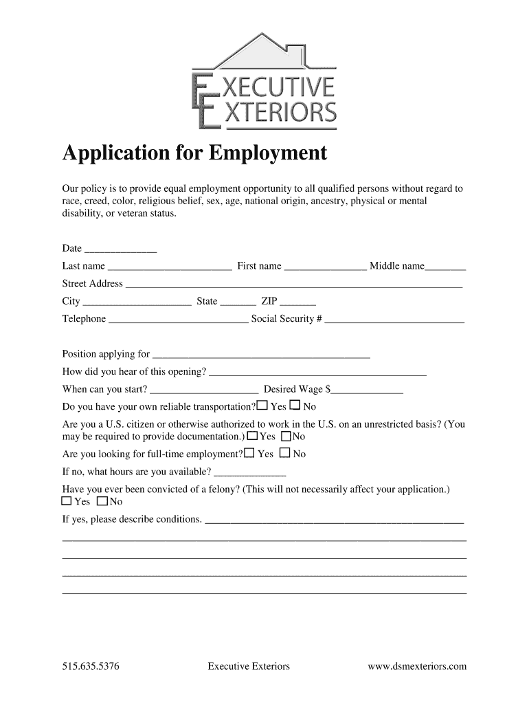 Application for Employment Our policy is to provide equal employment opportunity to all qualified persons without regard to race, creed, color, religious belief, ...