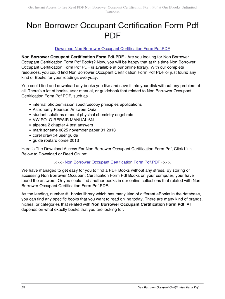 Get Instant Access to free Read PDF Non Borrower Occupant Certification Form PDF at Our E-Books Unlimited Database Non Borrower Occupant Certification Form PDF Download Non Borrower Occupant Certification