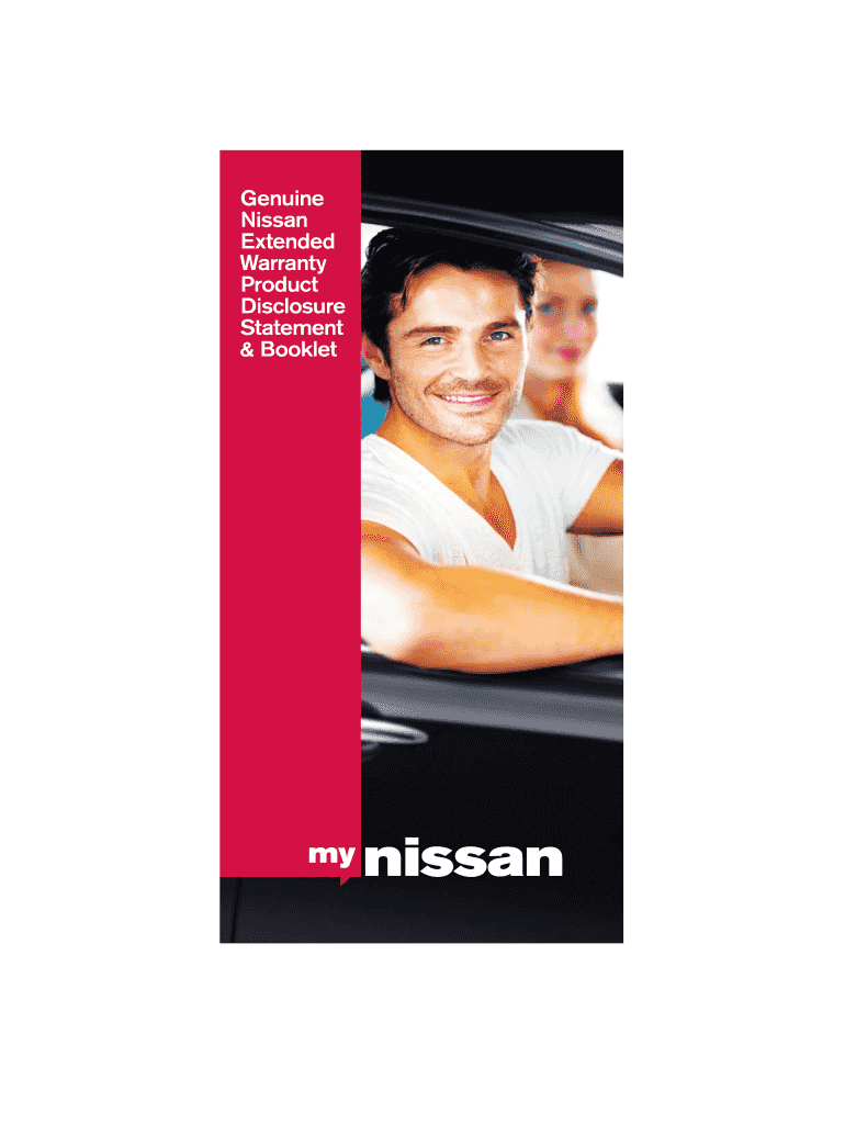 Genuine Nissan Extended Warranty Product Disclosure Statement & Booklet 1 159674 POL602 Nissan D1. Indy 1 6/08/12 2:51 PM Preparation date: 1st February 2012 This product is issued by Nissan Motor