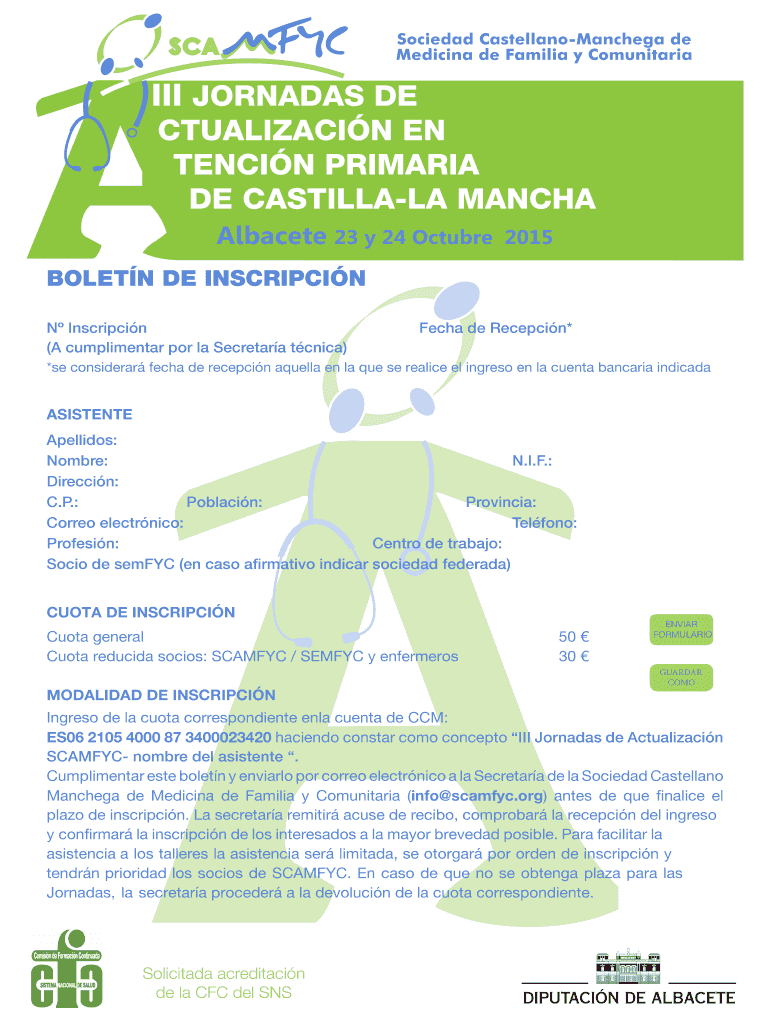 Albacete 23 y 24 October 2015 III TORNADOS DE CTUALIZACI N EN TENCH N PRIM ARIA DE CASTILLA-LA MANCHU Solicited acreditaci n de la CFC del SNS BOLT N DE INSCRIBED N