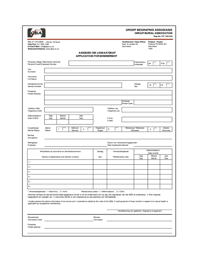 Get the free GBA - Application Form - gba co