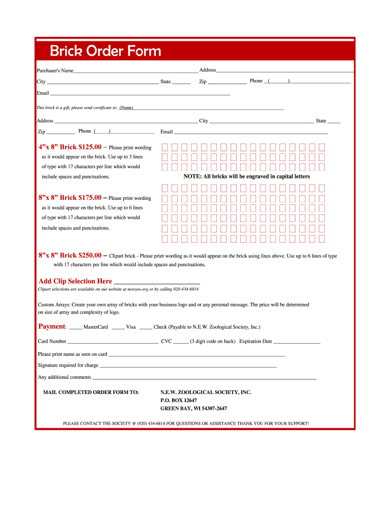 Get the free Brick Order Form - newzoo.org