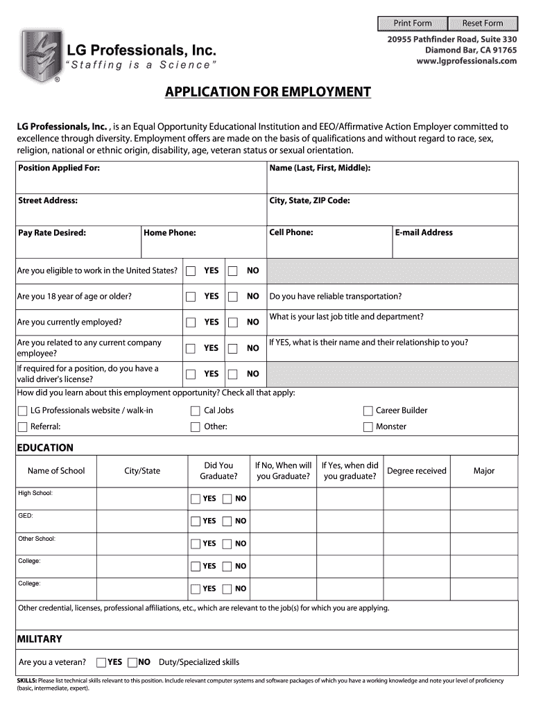 APPLICATION FOR EMPLOYMENT. LG Professionals, Inc., is an Equal Opportunity Educational Institution and EEO/Affirmative Action Employer committed to.