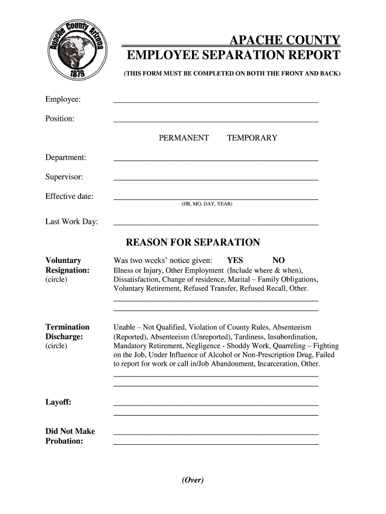 Get the free APACHE COUNTY EMPLOYEE SEPARATION REPORT - co.apache.az.us