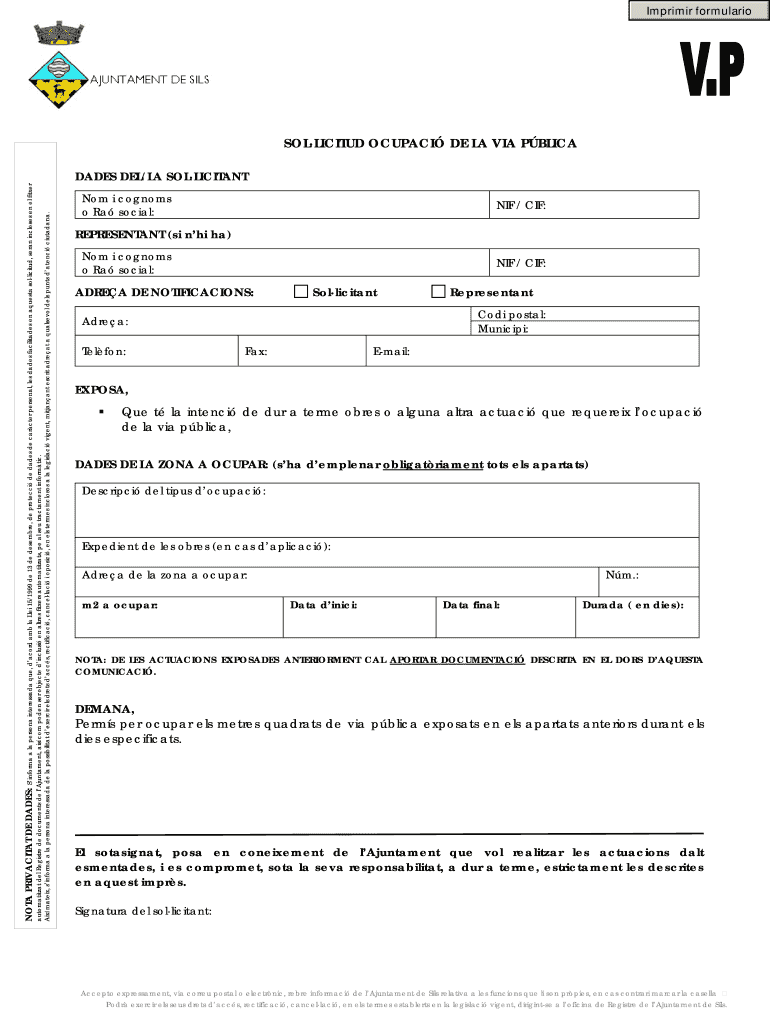 Get the free sol licitud ocupaci de la via p blica - Ajuntament de Sils - sils