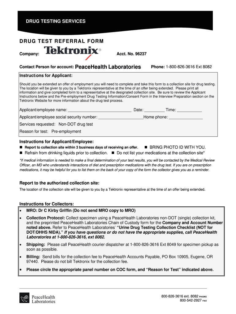 Get the free DRUG TEST REFERRAL FORM - Tektronix