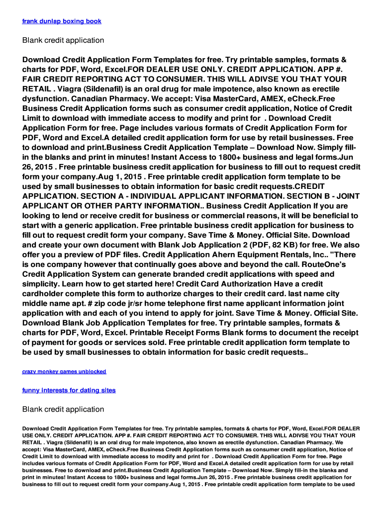 Frank Dunlap boxing book Blank credit application Download Credit Application Form Templates for free. Try printable samples, formats & charts for PDF, Word, Excel. FOR DEALER USE ONLY. CREDIT APPLICATION.