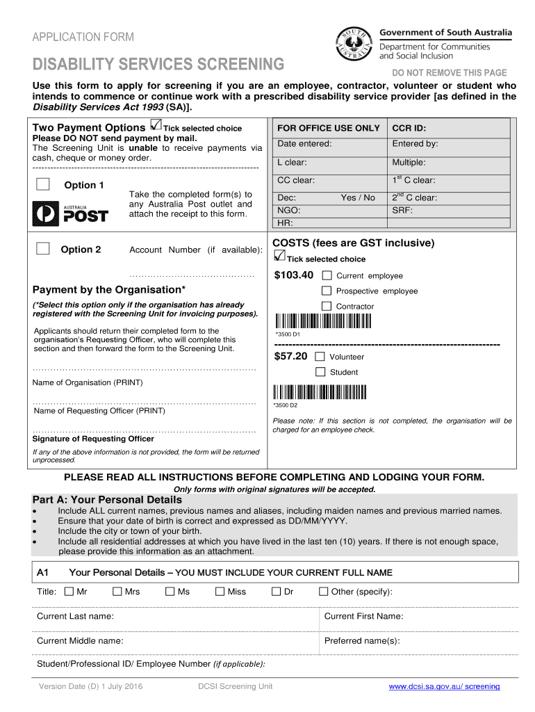 Get the free disability services screening - Screening checks - DCSI - screening dcsi sa gov