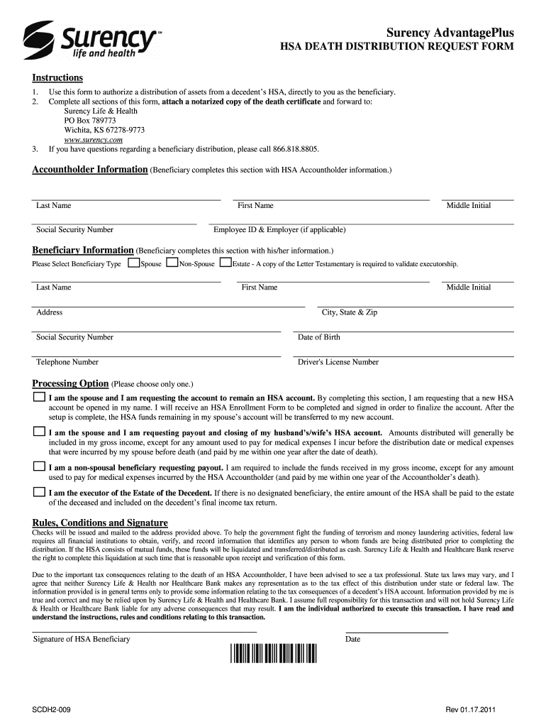 HSA DEATH DISTRIBUTION REQUEST FORM. Instructions. 1. Use this form to authorize a distribution of assets from a decedent s HSA, directly to you as the beneficiary.