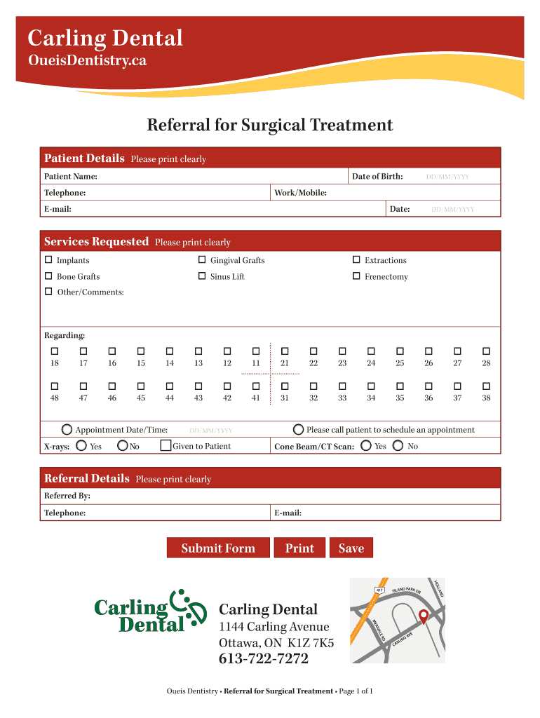 Calling Dental OueisDentistry.ca Referral for Surgical Treatment Patient Details Please print clearly Patient Name: Date of Birth: DD/MM/YYY