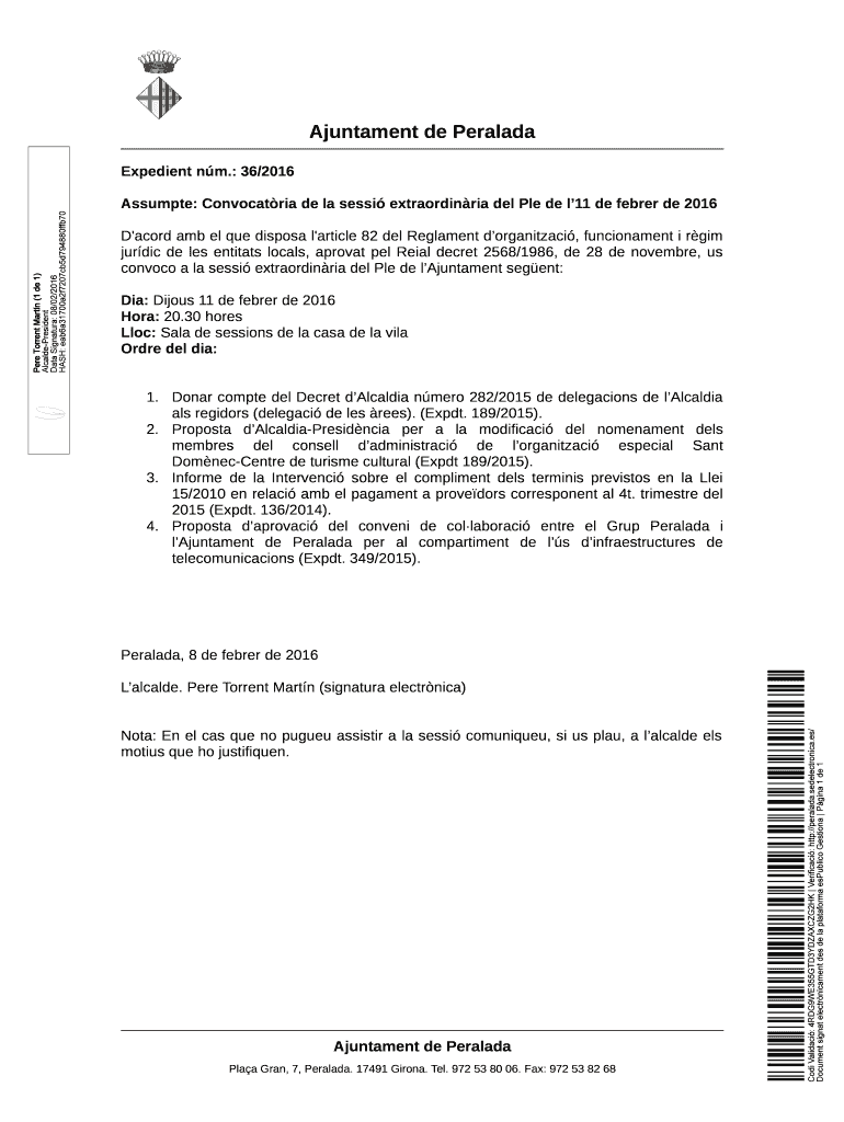 Adjustment de Peralada Expedient n m.: 36/2016 Assume: Convict RIA DE la Messi extraordinary RIA Del PLE de l 11 de Ferber de 2016 D am el Que disposal ...