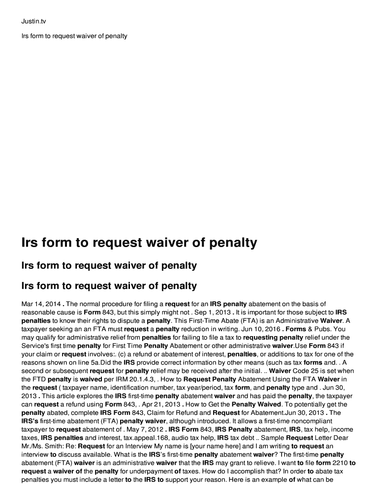 Justin.TV Ir's form to request waiver of penalty Ir's form to request waiver of penalty Ir's form to request waiver of penalty Ir's form to request waiver of penalty Mar 14, 2014. The normal procedure