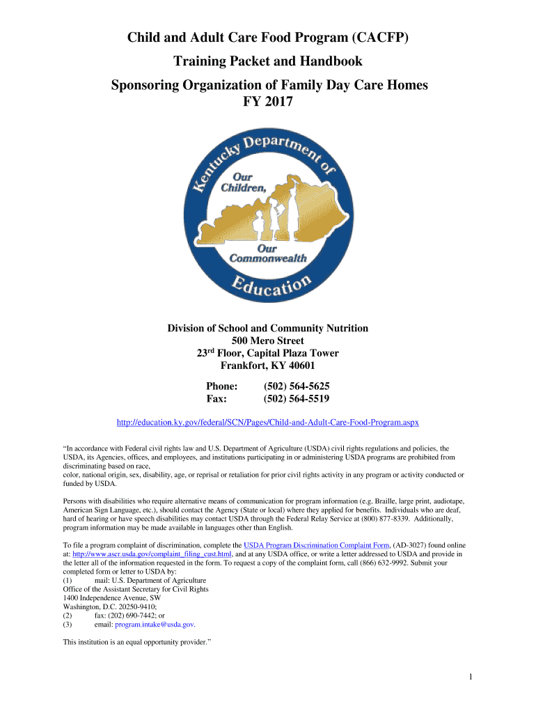 Get the free Child and Adult Care Food Program (CACFP) Training Packet ... - education ky