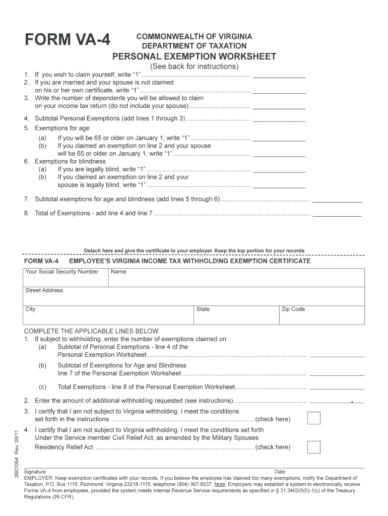 FORM VA-4 INSTRUCTIONS Use this form to notify your employer whether you are subject to Virginia income tax withholding and how many exemptions you are allowed to claim.