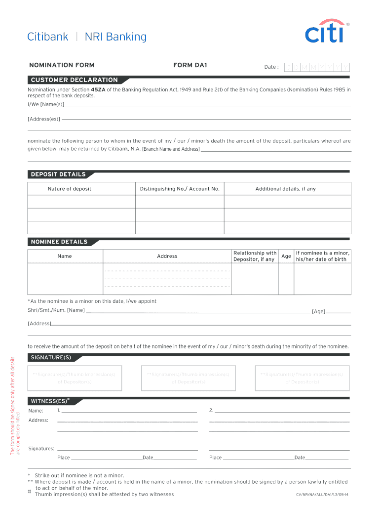 Get the free Nomination Form DA1 - Investment Insurance Banking - online citibank co