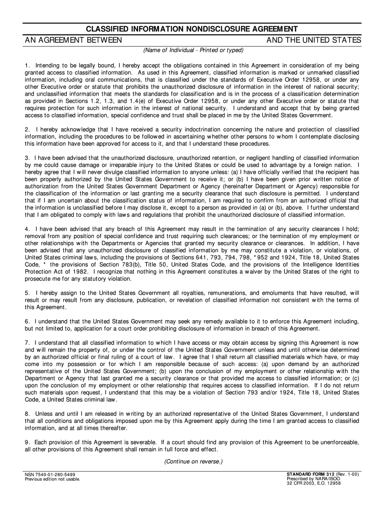 How to fill out the classified information non-disclosure agreement