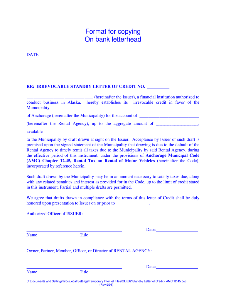 Get the free Standby Letter of Credit - AMC 12.45.doc - muni