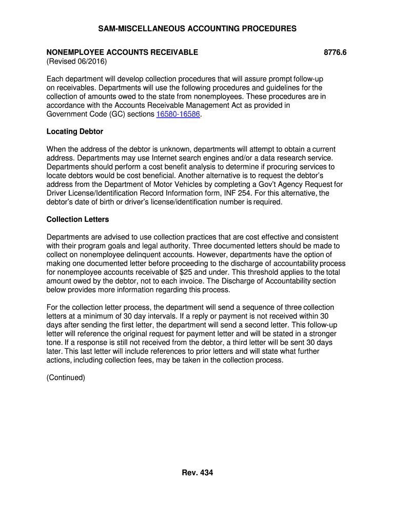 (Revised 06/2016)8776.6Each department will develop collection procedures that will assure prompt followup