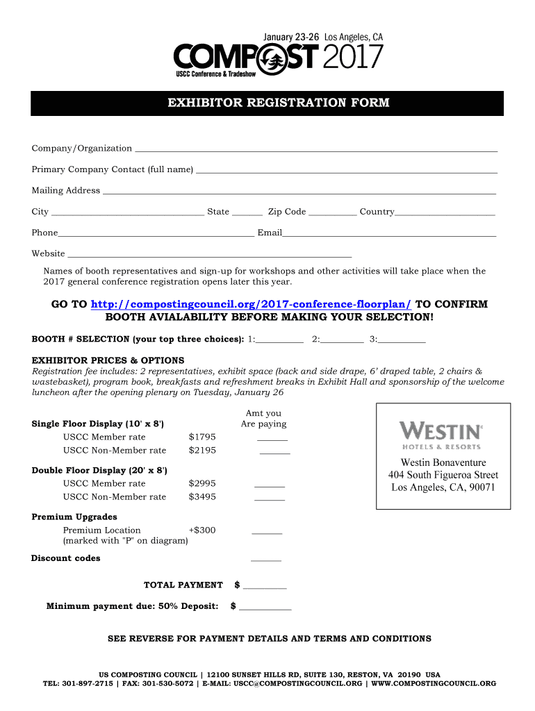 Get the free 2017 EARLY Exhibitor Registration Form - compostingcouncil