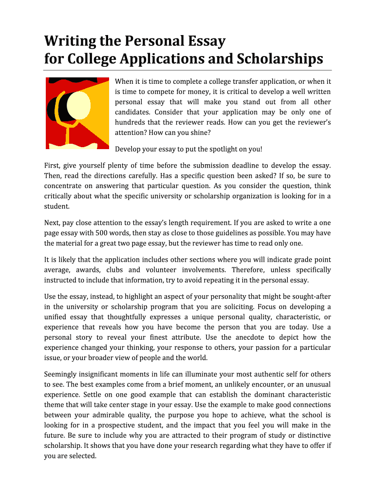 How to fill out writing form personal essay?