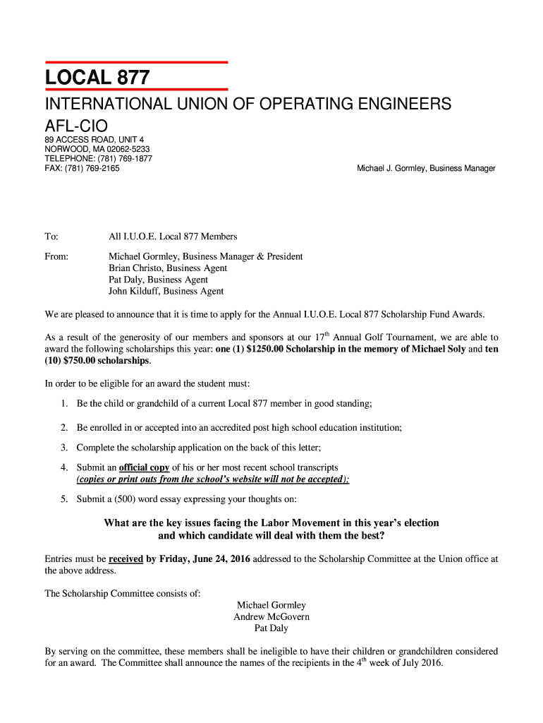 Get the free Scholarship 2016 Application and Instructions - IUOE Local 877